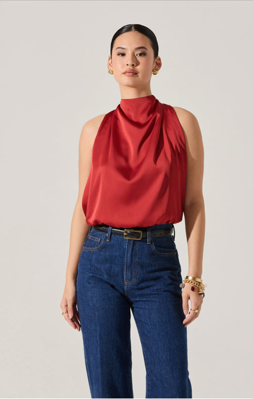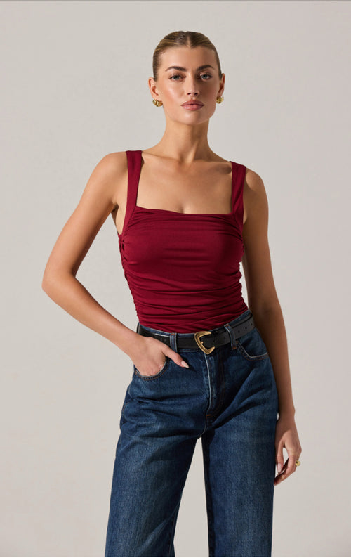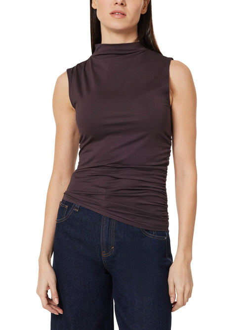 Sleeveless Gathered Top- Chocolate