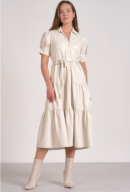 Mock Neck Midi Dress- Cream