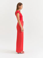 The Far Out in Cherry is an ultra-flattering high rise wide leg jean in a vibrant cherry red hue. Pair with the Lily Baby Tee in Cherry for a bold monochromatic look.