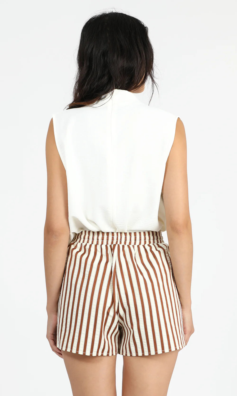Textured cotton striped shorts featuring a mixed media drawstring, elastic waistband, and side pockets. Style withGraham Striped Shirt for an easy one-and-done look.