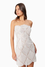 Elevate your style with our Embroidered Fitted Strapless Mini Dress, a masterpiece of delicate craftsmanship and modern design. This exquisite white dress is the epitome of chic elegance, perfect for those who want to make a stunning impression.