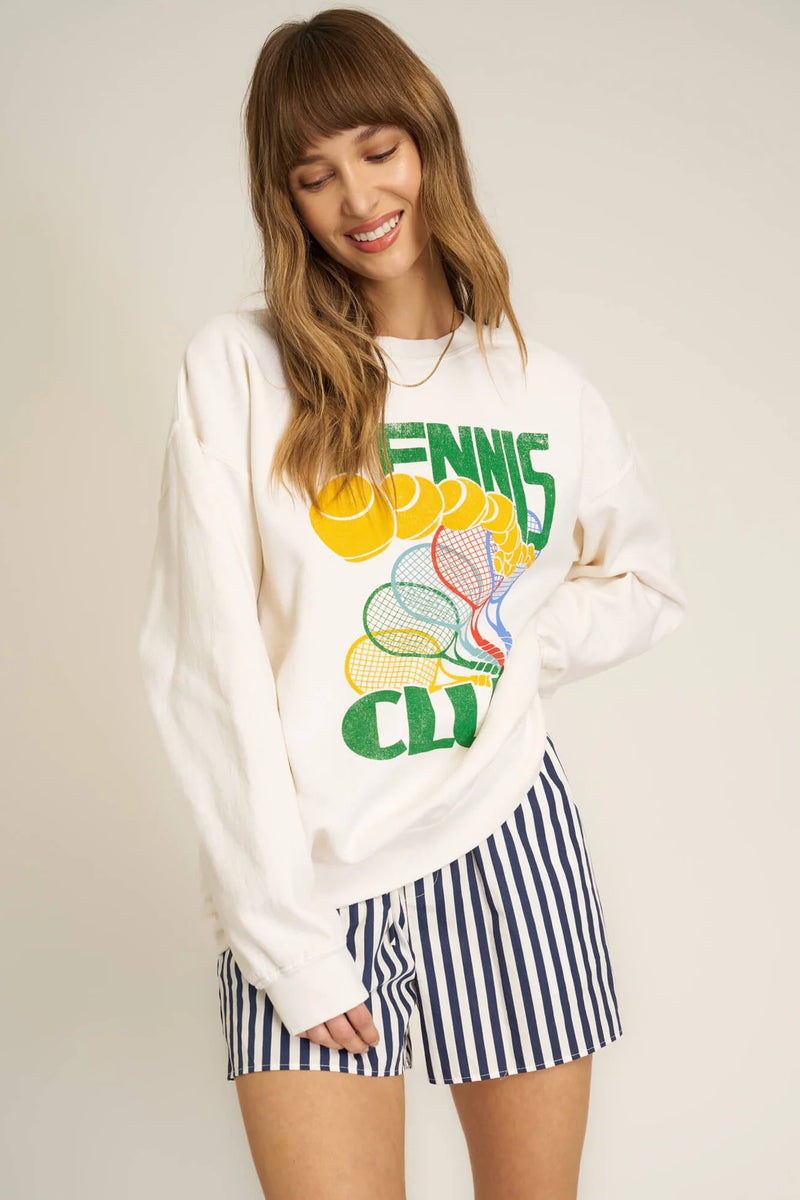 The Tennis Club Sweatshirt deserves a spot in your weekend style rotation, whether you're headed to the country club or not. This relaxed silhouette features a crew neckline, drop shoulders, and a soft terry fabric. Add this to cart and add serving practice to your weekend to-dos.