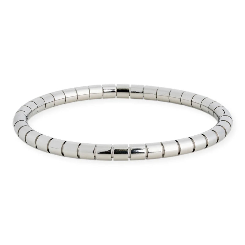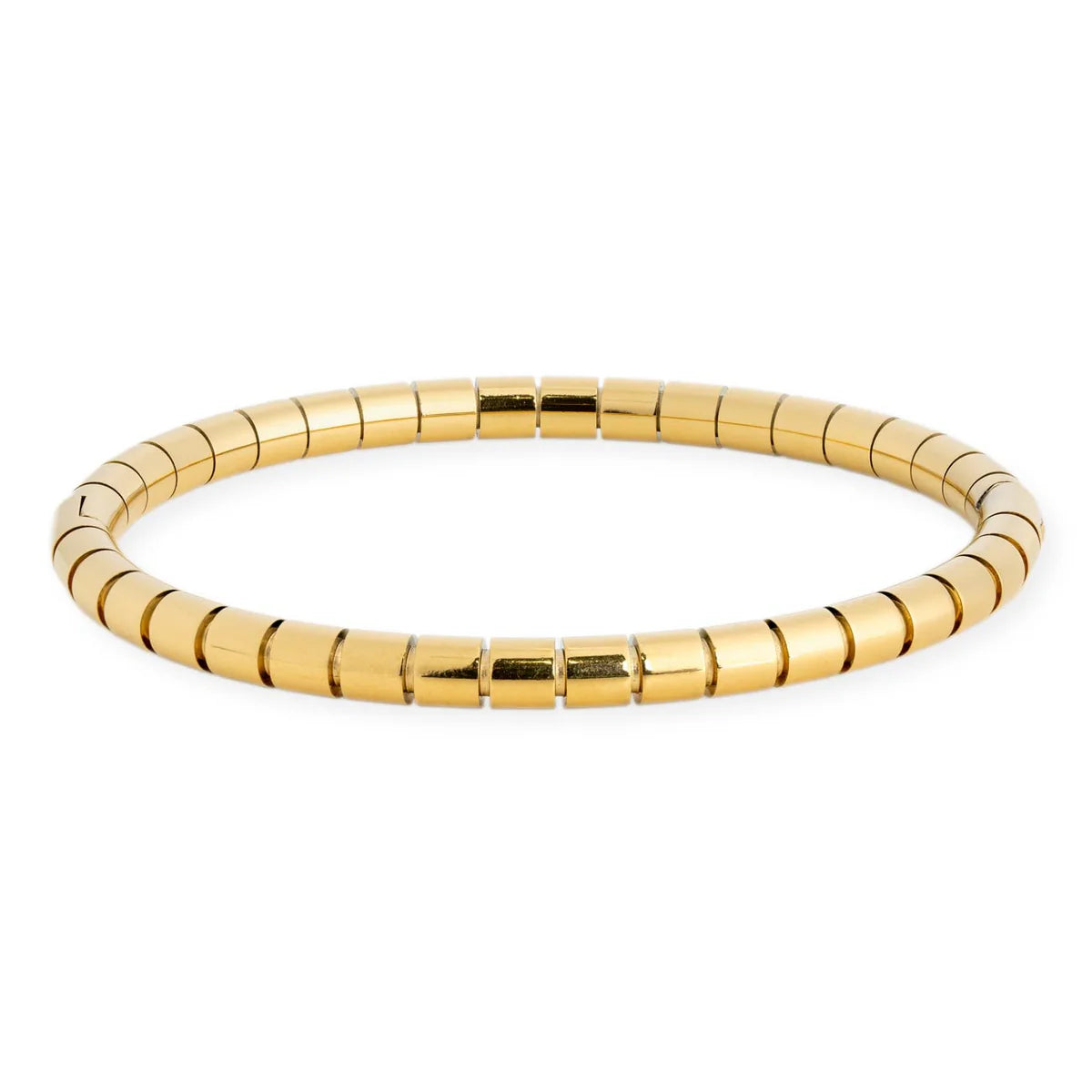 The Carter Bracelet is a versatile accessory that can be worn as a set or individually, in either gold or silver. Its stackable design allows for endless style possibilities, while the water-resistant material ensures durability.